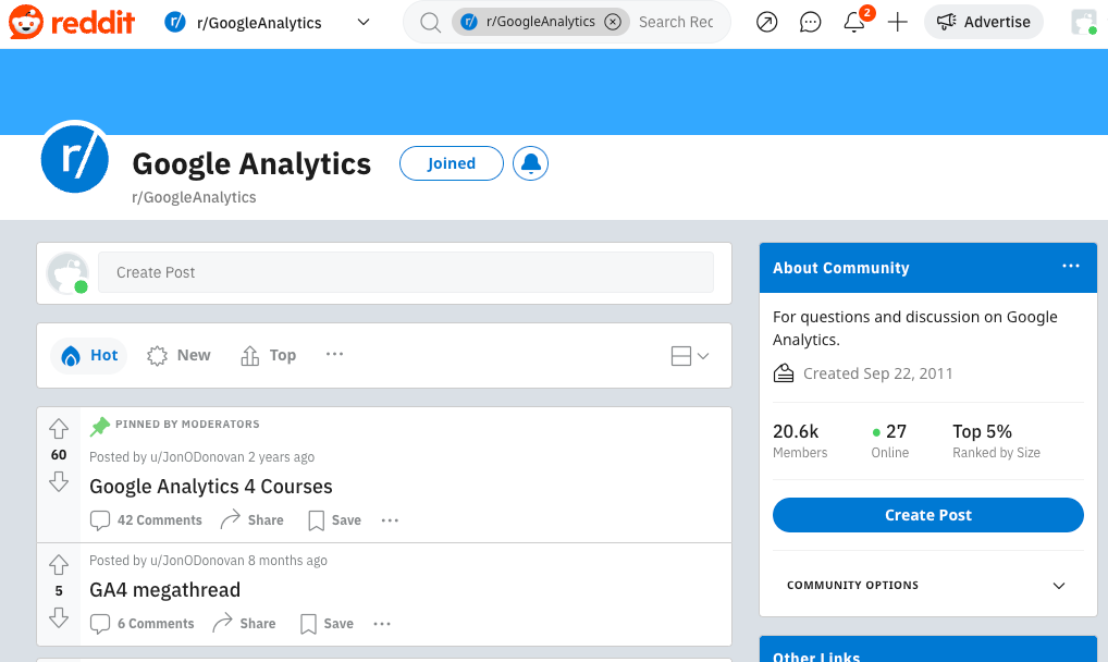 Home » GA4 Support Groups » r/GoogleAnalytics on reddit